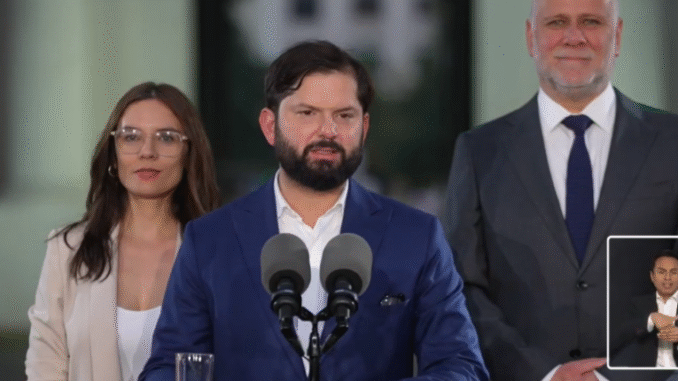 En su declaración en el Palacio de La Moneda, el mandatario estuvo acompañado de los ministros de la secretaría general de Gobierno (Segegob), Camila Vallejo, y del Interior, Álvaro Elizalde.